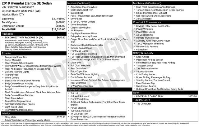 2018 Hyundai Elantra SE – Quartz White Pearl – Efficient, Award-Winning Compact Sedan
