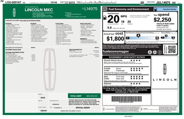 Under the hood, you'll find a powerful 2.0L Turbocharged engine, paired with a 6-speed automatic transmission and all-wheel drive, delivering an impressive blend of performance and efficiency. Enjoy an EPA-estimated 19 city/25 highway MPG, making this MKC both practical and enjoyable to drive.