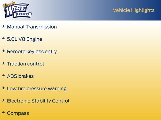 Power & Control: Driven by the formidable 5.0L V8 Ti-VCT engine and a rev-matching 6-speed manual transmission.