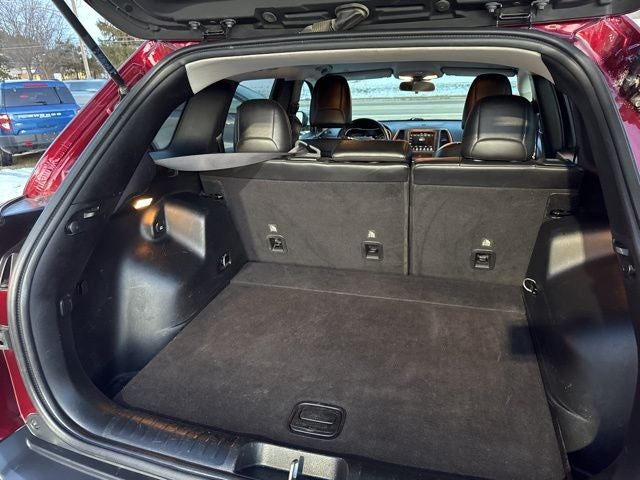 The Trailhawk's rugged good looks are complemented by its premium interior features, including a leather-wrapped steering wheel, power driver's seat, and split-folding rear seats for maximum versatility. With the Trailer Tow Group, you'll have the capability to haul your toys or gear with confidence, while the advanced safety technologies, including Blind Spot Monitoring and Rear Cross-Path Detection, provide added peace of mind on the road.